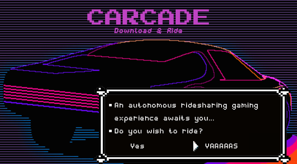 Visual concepts for a brand identity system for a hypothetical autonomous ride sharing service I created called Carcade. Carcade is an autonomous ridesharing service in which users can play their favorite games on their way to their destination. The overall look and color themes were inspired by retro video games and vaporwave.